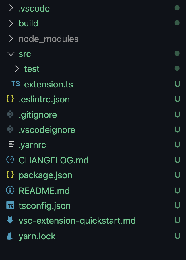 간단히 설명하면 package.json에 익스텐션 설정을 작성하고 실제 동작 로직은 extension.ts에 작성합니다.